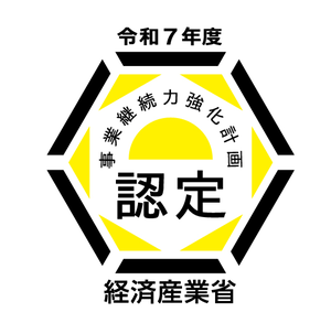経済産業省(中小企業庁)から「事業継続力強化計画」策定企業の認定を受けました。